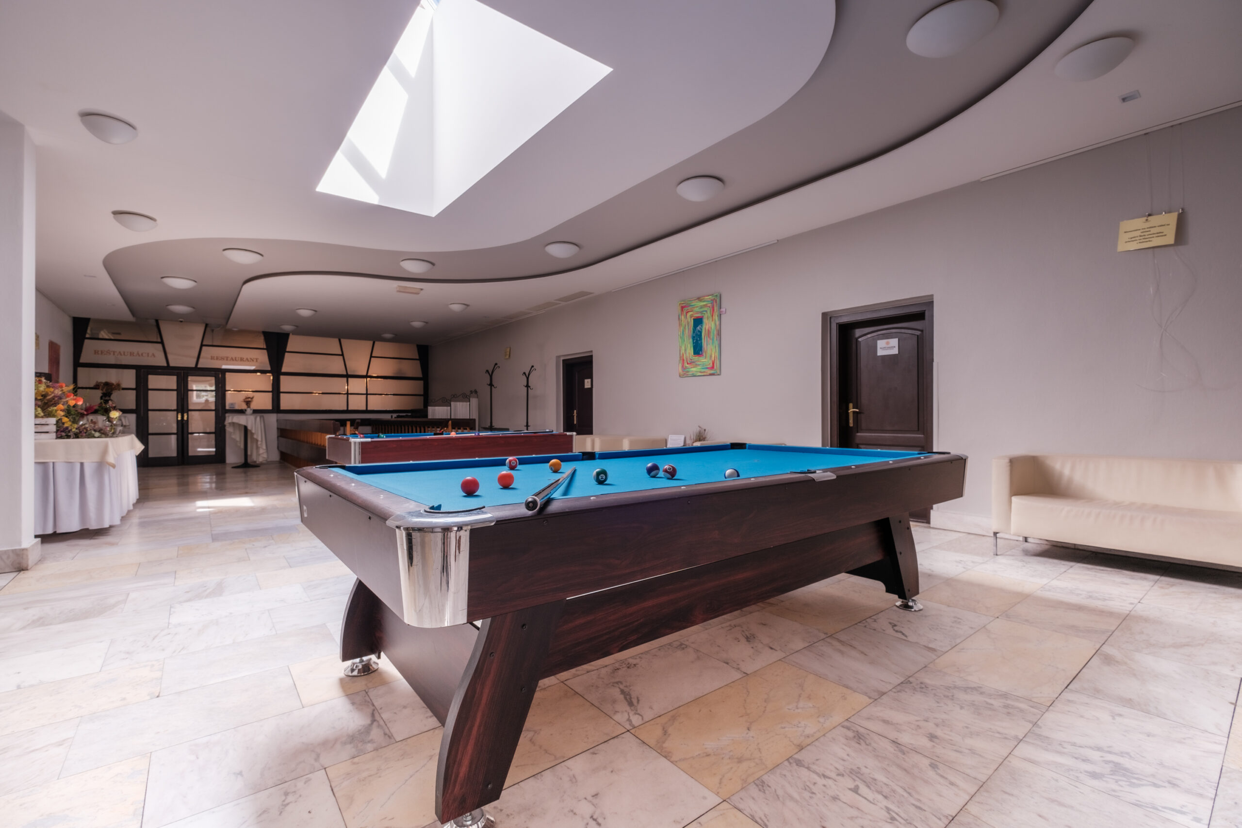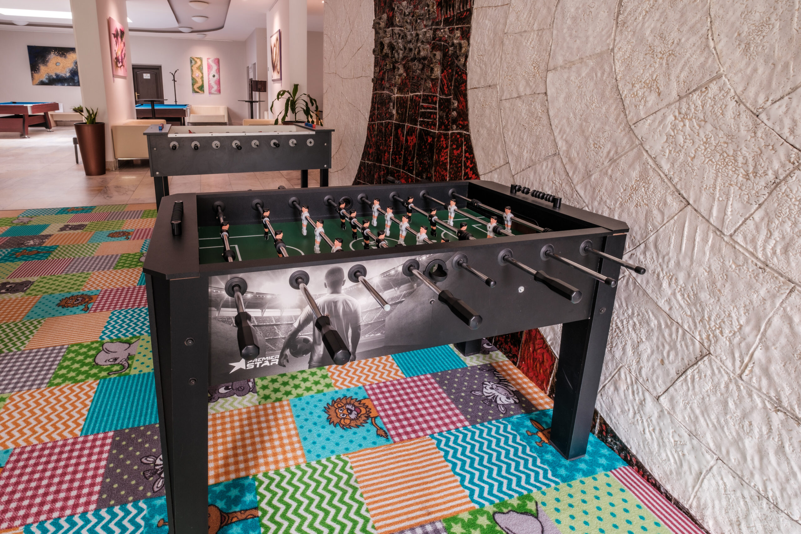 K dispozícii máte zdarma dva billiardové stoly, dva stoly na kalčeto a stolný tenis. NOVINKA v našom hoteli – Air Hockey a šípky. Na recepcii hotela si taktiež môžete zapožičať rozličné spoločenské hry. Naši najmenší hostia môžu na hranie využiť naše dva detské kútiky, jeden v lobby hotela a druhý pri bazéne.